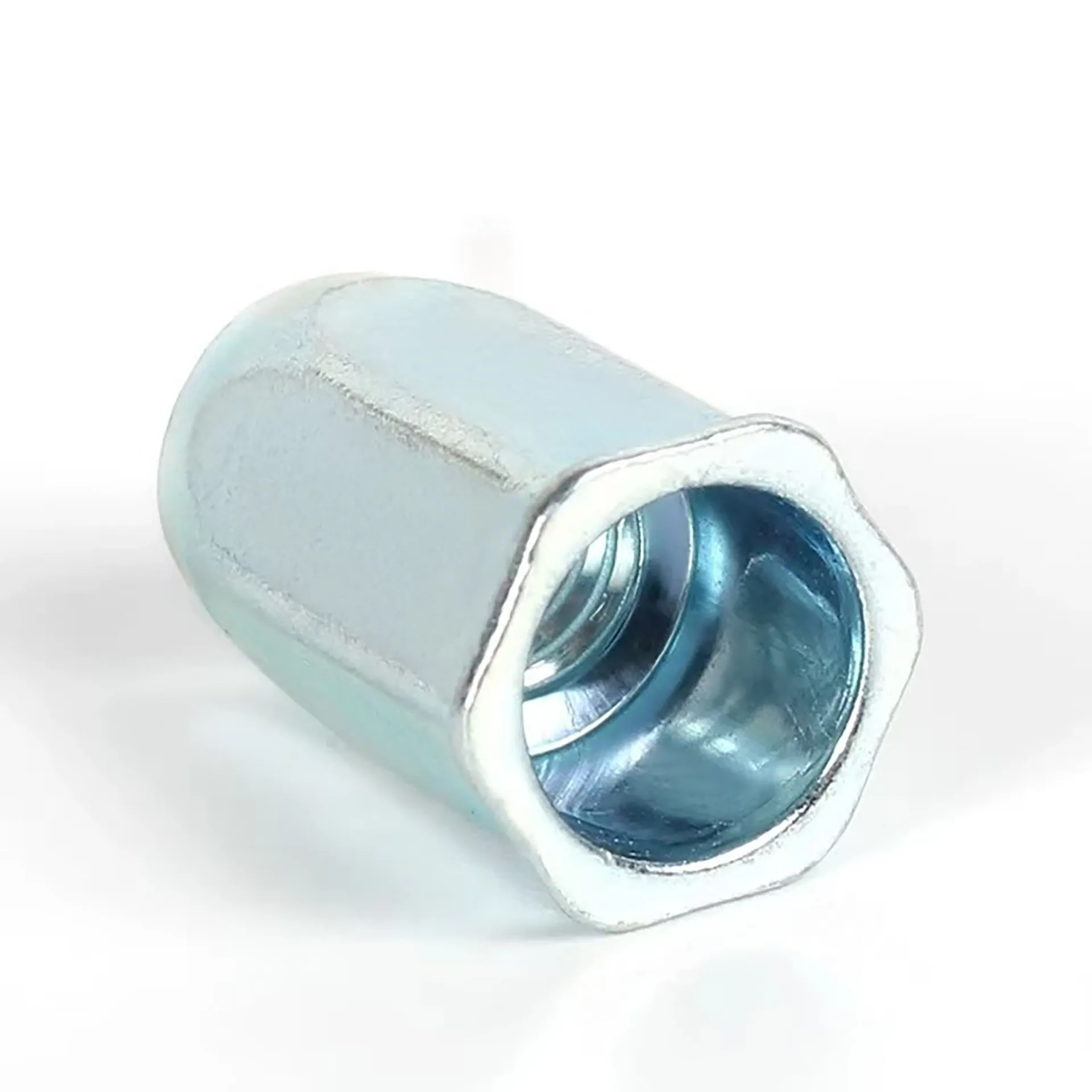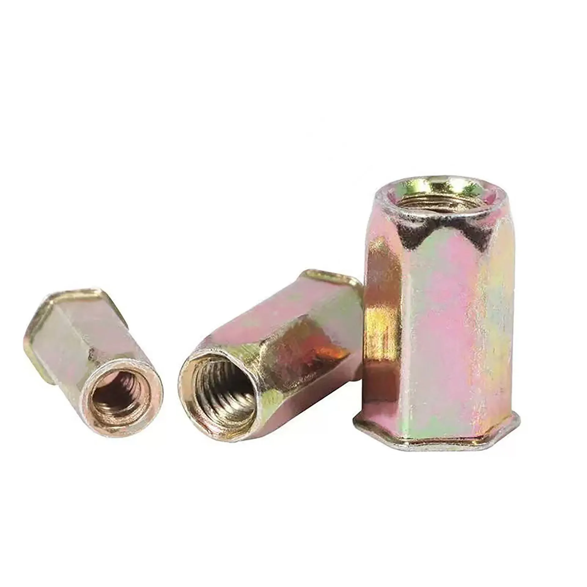 Installed using specialized pull-through riveting tools, the tail end of the nut undergoes plastic deformation, forming a large flange on the reverse side of the sheet. This mechanically locks the nut firmly in place, providing exceptionally high resistance to pull-out forces and ensuring a reliable, durable connection.