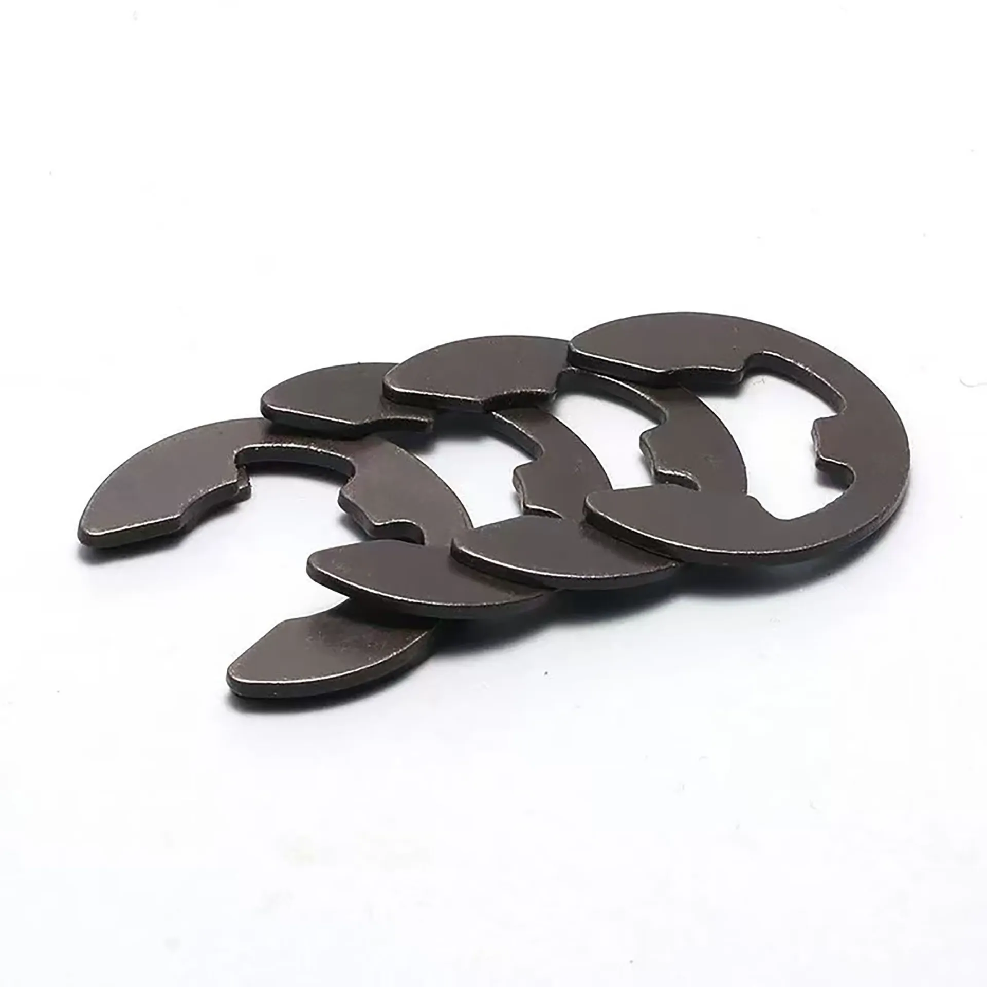 Machinery Manufacturing: In the machinery manufacturing process, E-type snap rings are commonly employed for connecting and securing components like transmission shafts and bearing housings. By carefully selecting the appropriate size and tolerance specifications, E-type snap rings effectively ensure the axial positioning of the transmission shaft and bearing housing, thereby enhancing the stability and reliability of the mechanical system.