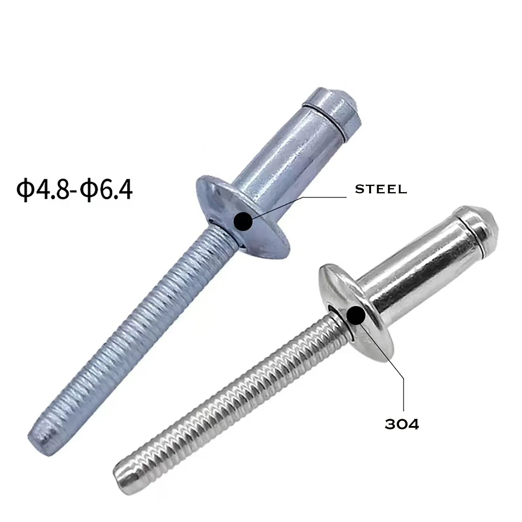 Locked Mandrel: During the installation process, when the pulling force reaches a predetermined value, the mandrel breaks at the designed fracture point. Most critically, the broken mandrel is securely locked inside the rivet body by an internal mechanical mechanism, rather than merely being crimped in place as with ordinary rivets.