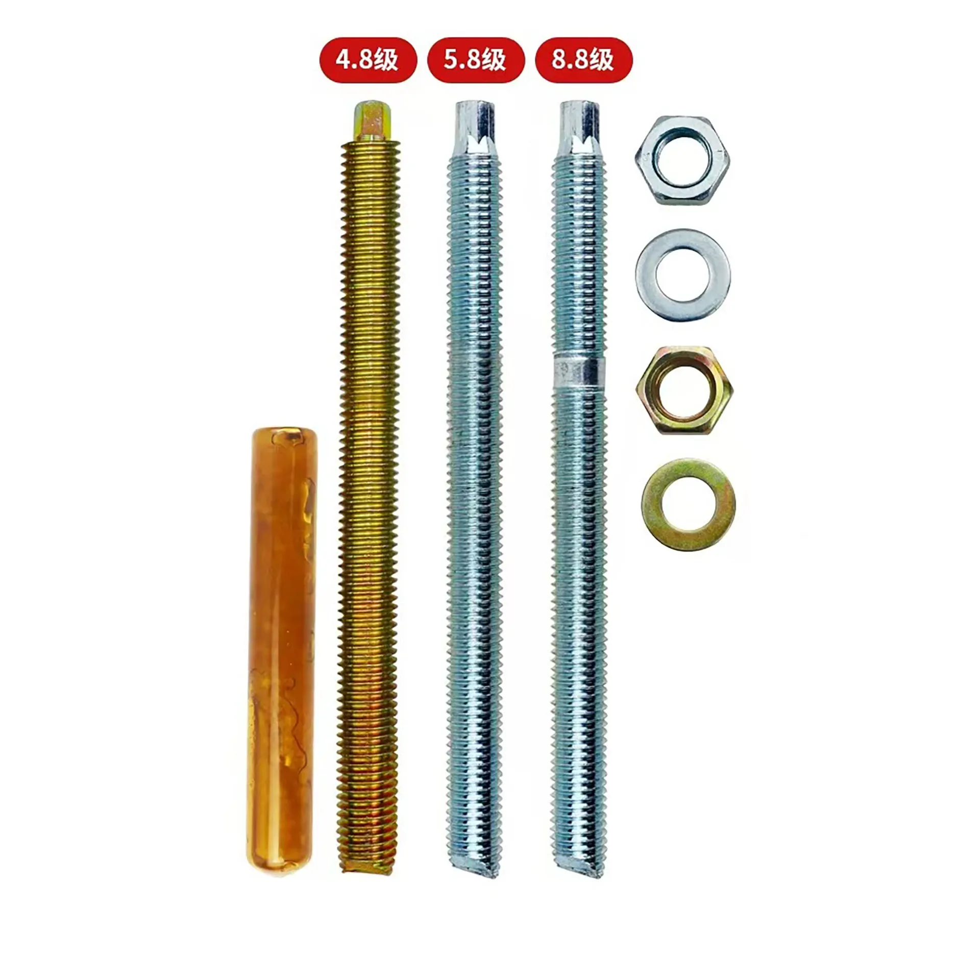 A chemical anchor is a high-strength anchor primarily made from vinyl resin. It was formerly known as a "chemical bolt." As a new type of anchor that emerged after expansion anchors, the chemical anchor works by using a specially formulated chemical adhesive to bond the stud into a drilled hole in the concrete substrate, thereby achieving a secure anchorage for fastened components.