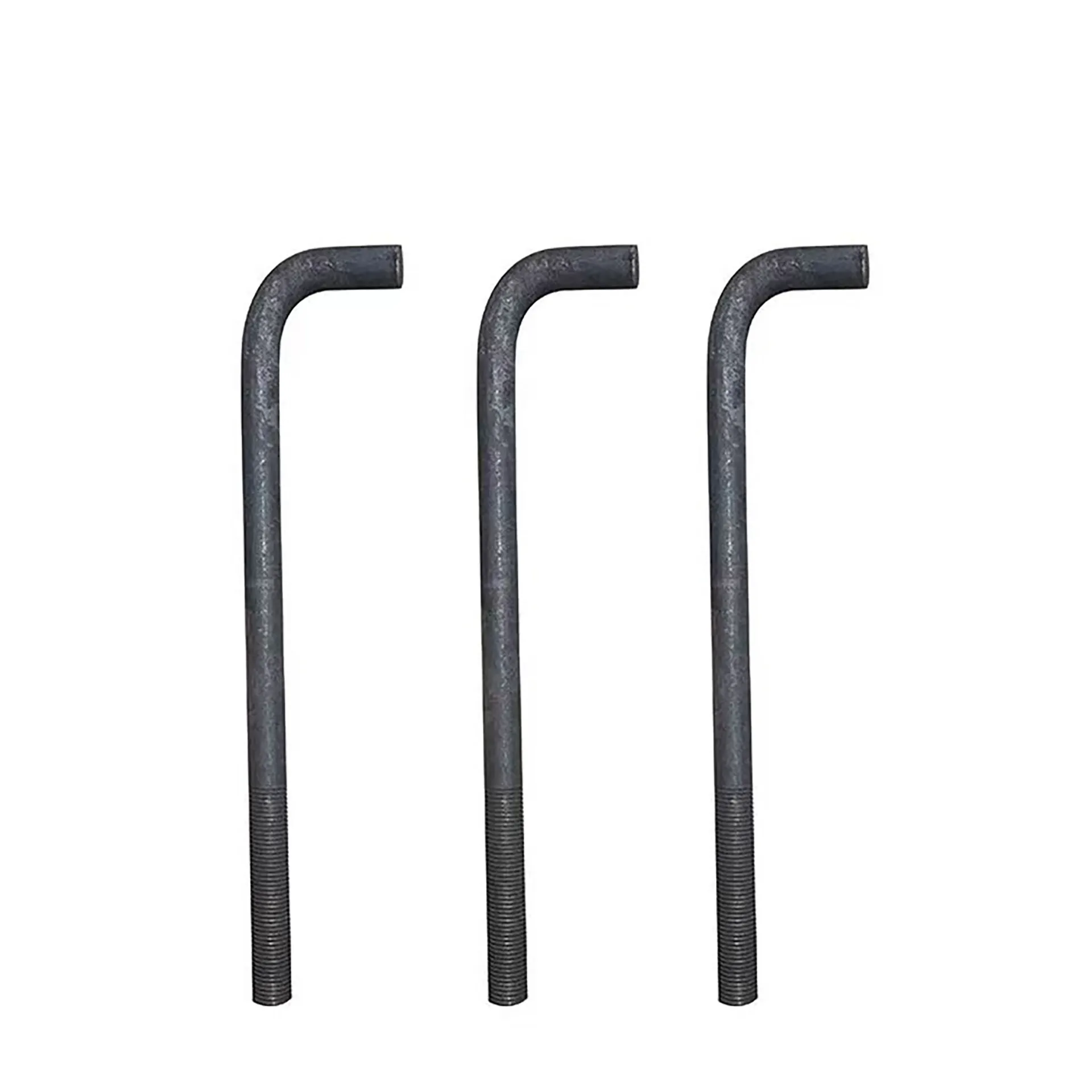 It typically consists of a straight rod section and a curved end. This design allows the bolt to be securely embedded into concrete or foundational structures after installation, providing enhanced pull-out resistance and stability