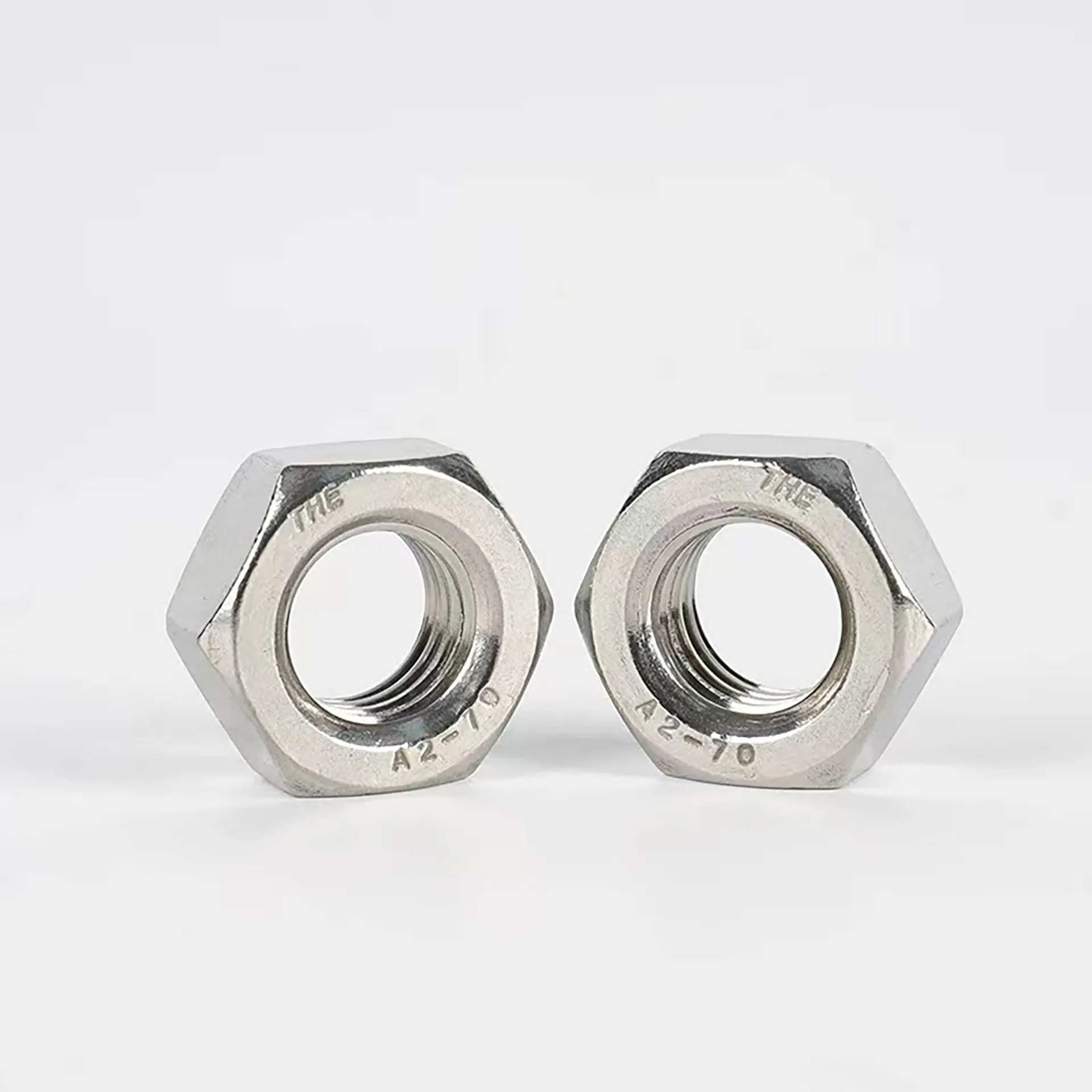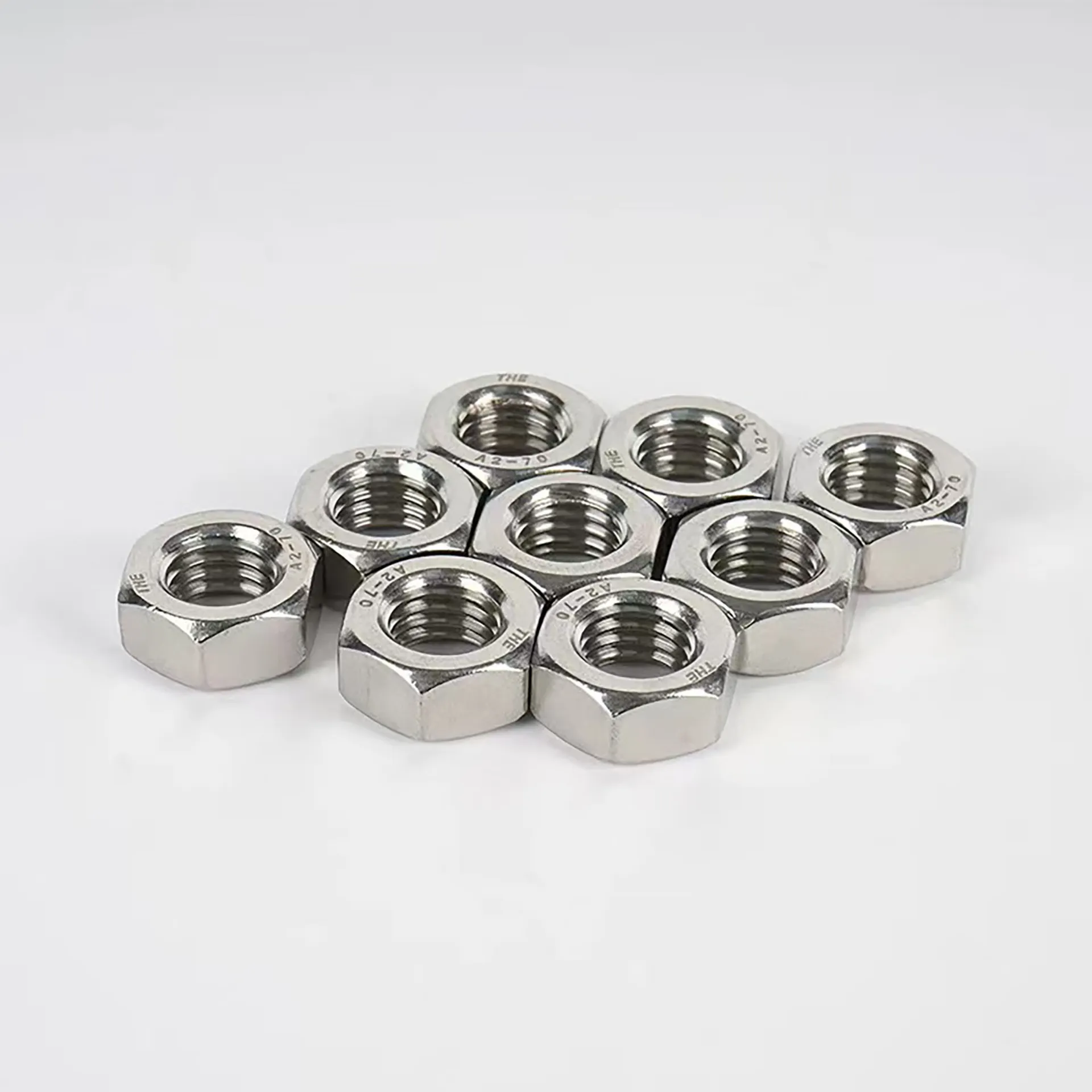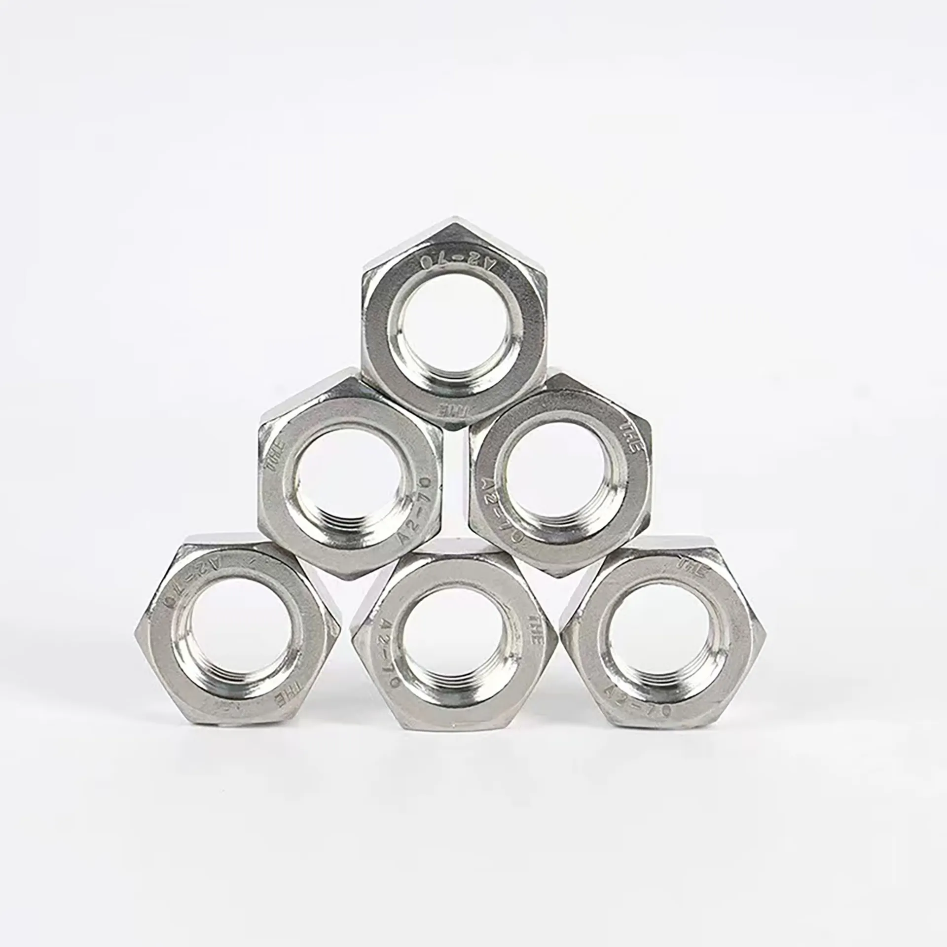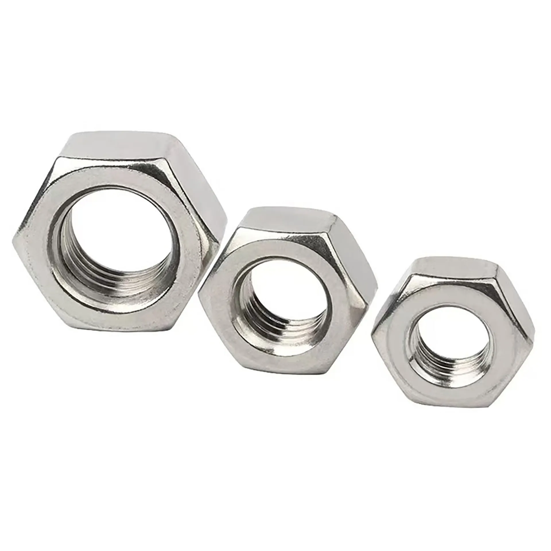 Stainless steel hex nuts are among the most common and standardized types of fasteners. Featuring a hexagonal exterior and pre-tapped internal threads, they are designed to be used in conjunction with bolts, studs, or screws. By threading onto these external fasteners, they securely join and clamp two or more components together. Manufactured from stainless steel, these nuts offer excellent corrosion resistance and reliable mechanical strength, making them widely suitable for applications where rust prevention and durability are essential.