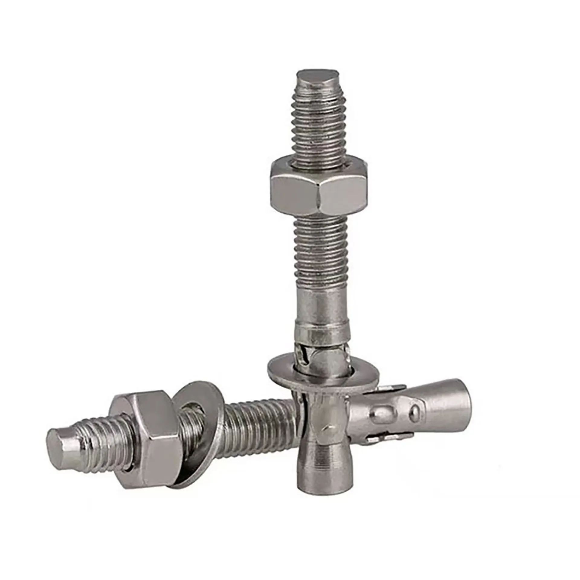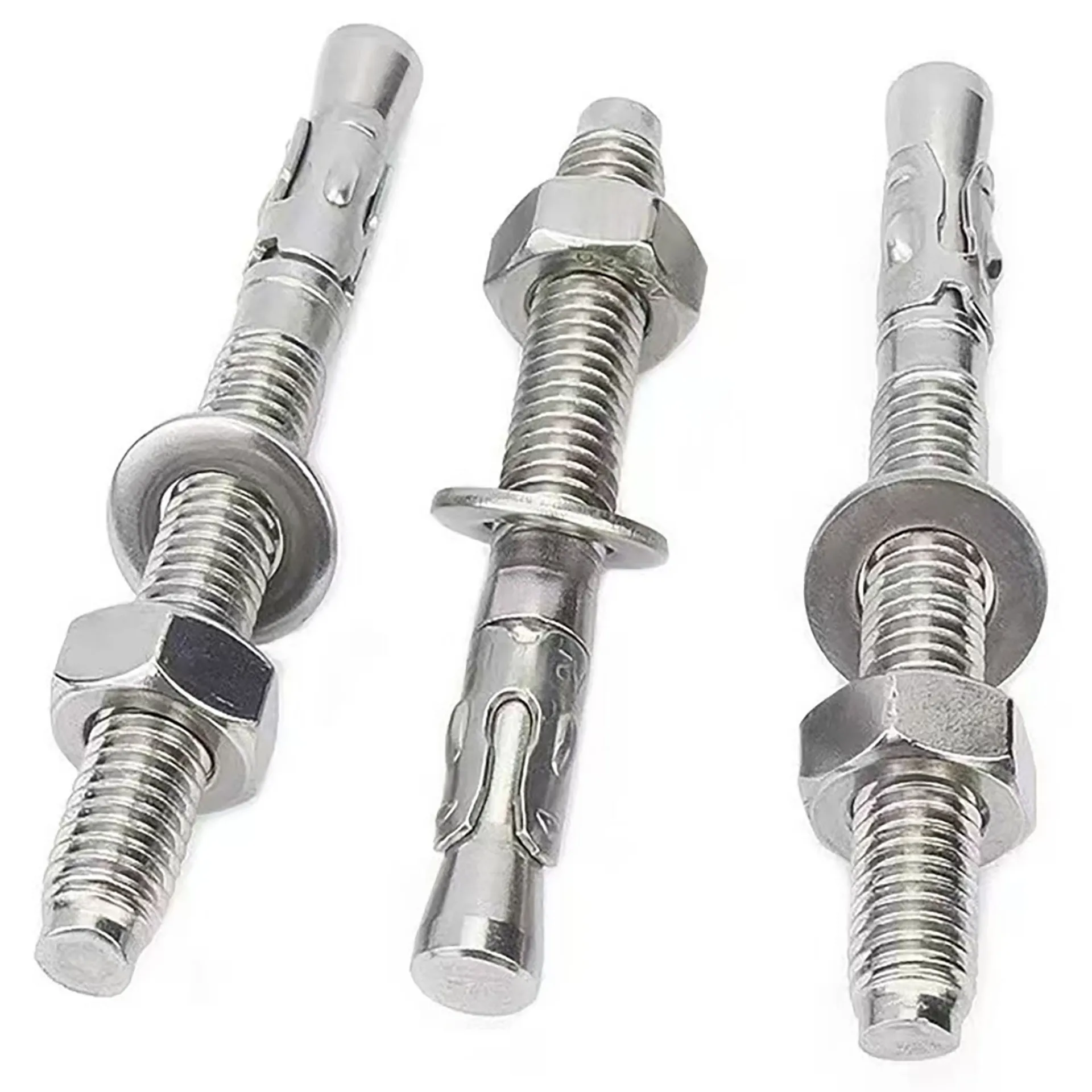 The wedge anchor consists of components such as a clip, flat washer, nut, and in some cases a spring washer, with standardized thread specifications. During installation, it generates fastening force through the compression and expansion of its clip ring, requiring no chemical adhesives and posing no strict demands on drilling depth. However, the drill hole size must precisely match the anchor. Additionally, the wedge anchor offers flexibility in adjusting spacing and thread length.